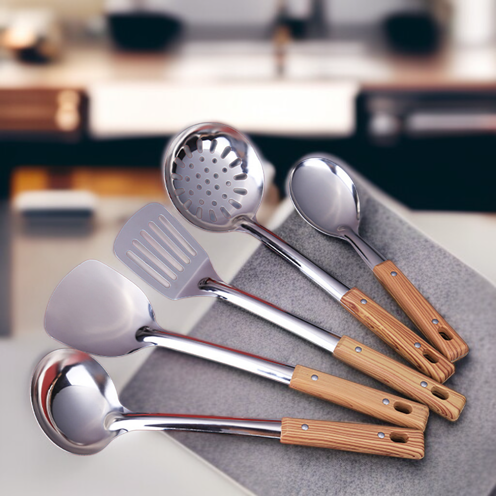 Stainless steel spatula set with imitation wood handle